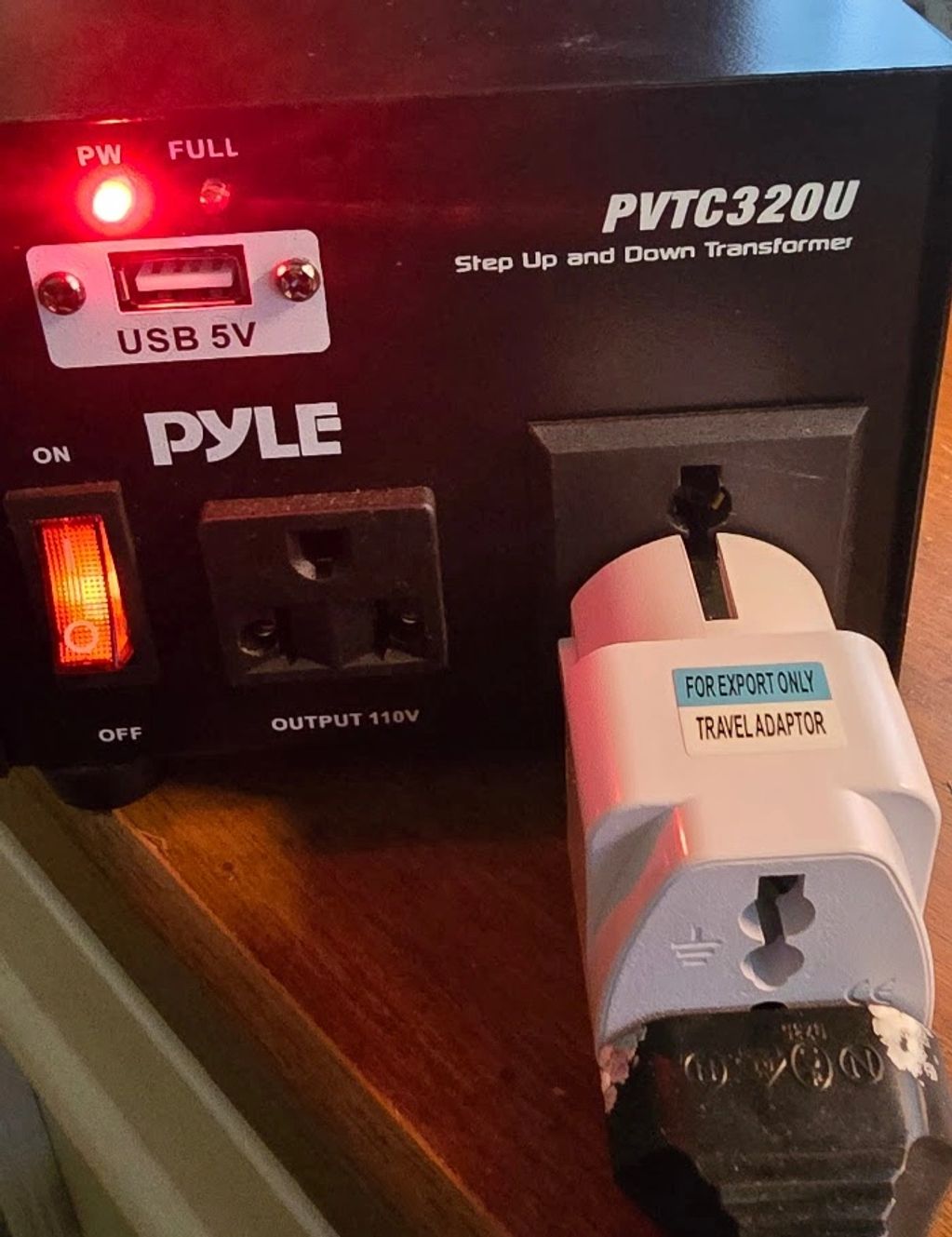 The computer is configured for 220V AC power and actually uses a transformer "brick" to deliver 10V AC to the system itself. We use our PYLE transformer to convert from 110V to 220V as the starting point.