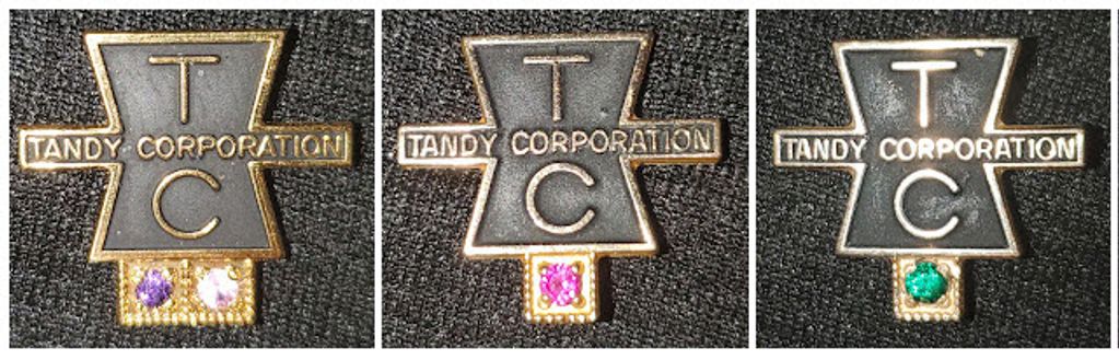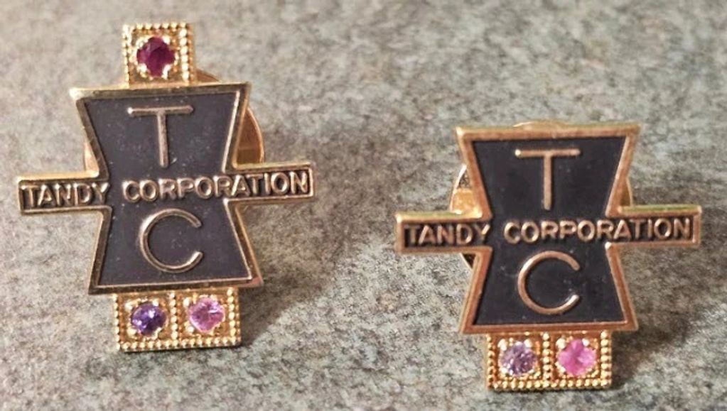 Service Anniversary Pins were awarded to employees to recognize their time at Tandy and/or Radio Shack. We were advised that the gem colors align to the following anniversaries. However, we have at least one pin in the collection that doesn't fit this pattern.